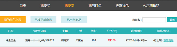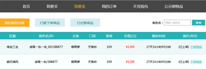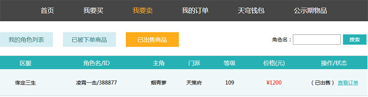 7、商品被购买后,玩家可以在:“我要卖---出售成功物品”页面查看已经出售的商品。